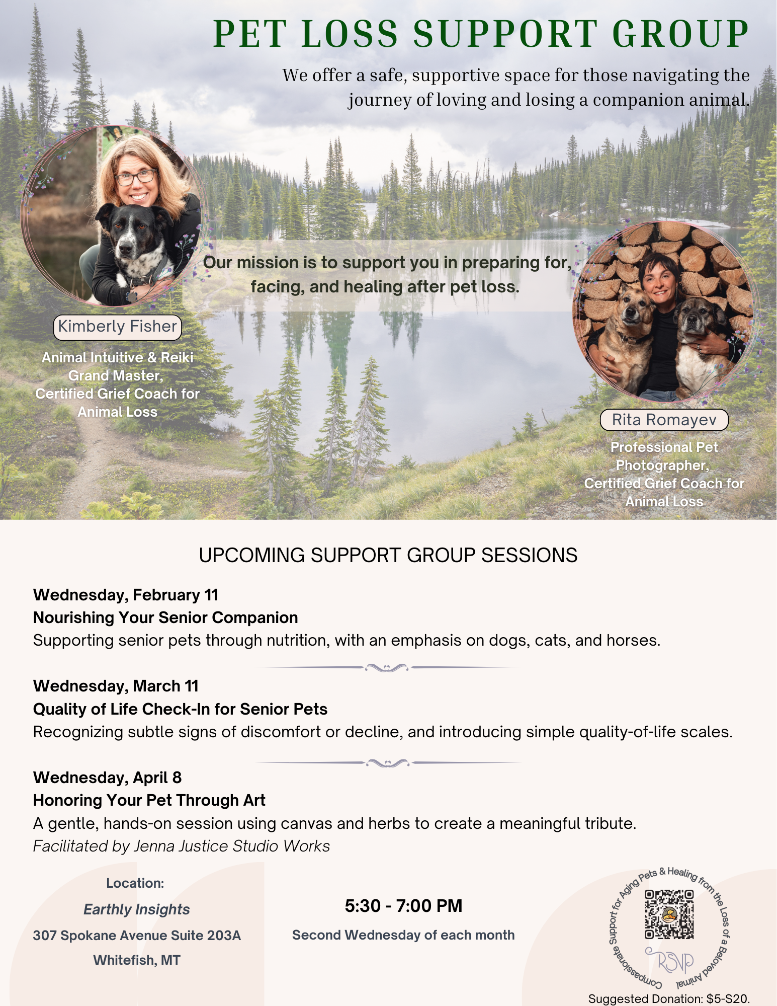As a certified Grief Coach for Pet Loss, I approach every session with the utmost respect, love, and kindness. I am here to support you not only during the session but also before and after, offering emotional support as you navigate the journey of saying goodbye. Your companion’s legacy deserves to be honored with care, and I am deeply committed to being there for you every step of the way.